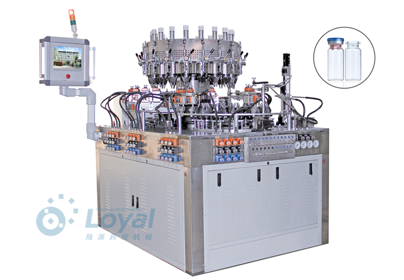 西林瓶生產線包括:自動上管、自動成型、經機械手轉換至前端檢測線(也叫生產管控)、檢測線檢測的項目:1、瓶口內外徑 2、瓶身長短 3、瓶身外徑 4、瓶口邊厚 5、瓶底內凹尺寸檢測;經檢測后的合格品再用機械手夾盤轉換至退火爐網(wǎng)帶上,經高溫減除應力后再降溫,通過氣動吸盤將回火后的小瓶轉換至后端檢測線,后端檢測(也是重檢也叫終檢),經后端拍照檢測項目